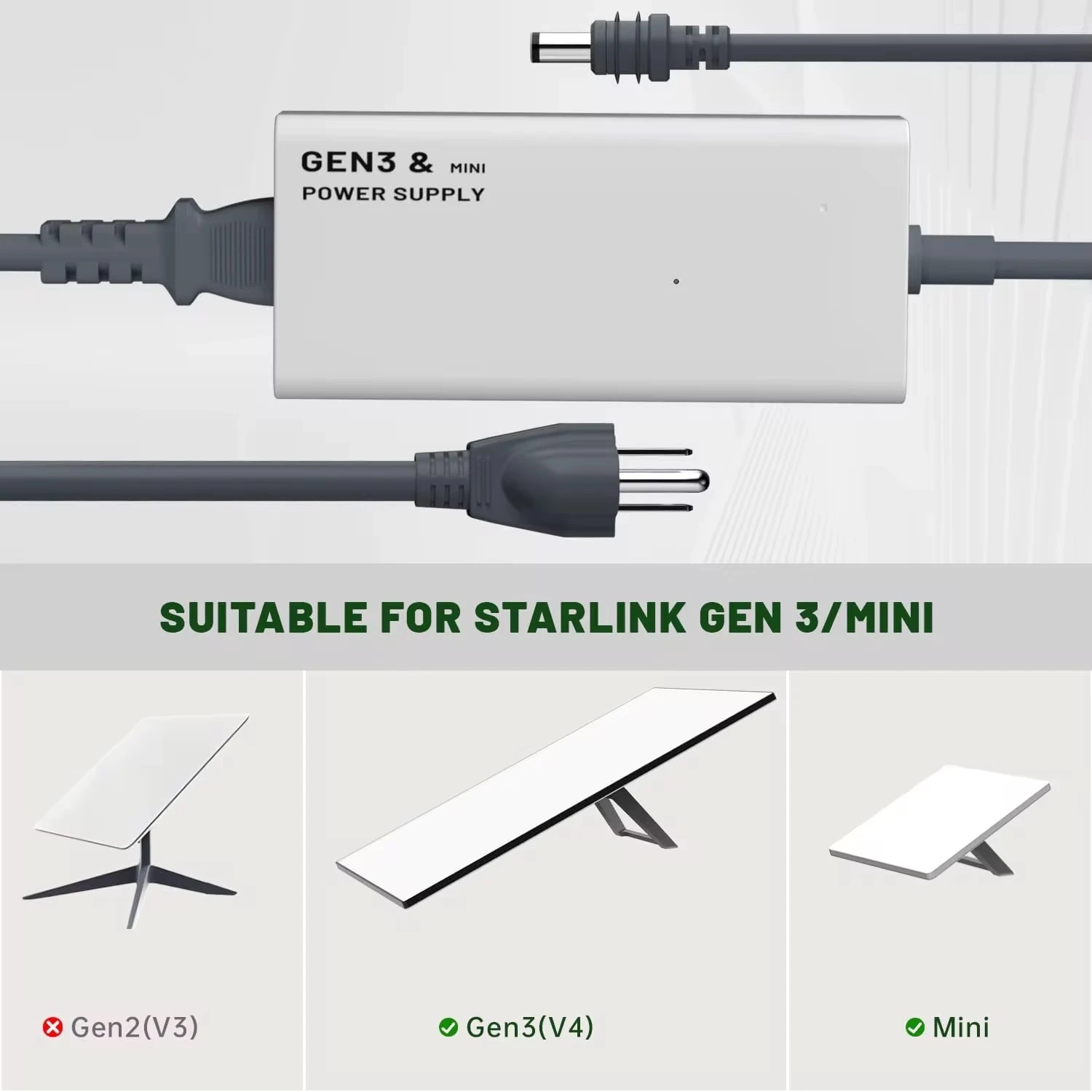 Alimentation pour routeur Starlink v4 et mini Conçu pour Starlink GEN 3 et mini peut charger votre appareil aussi efficacement que le chargeur d'origine. Idéal comme pièce de rechange ou de remplacement, il assure une connectivité ininterrompue pour votre Starlink GEN3.