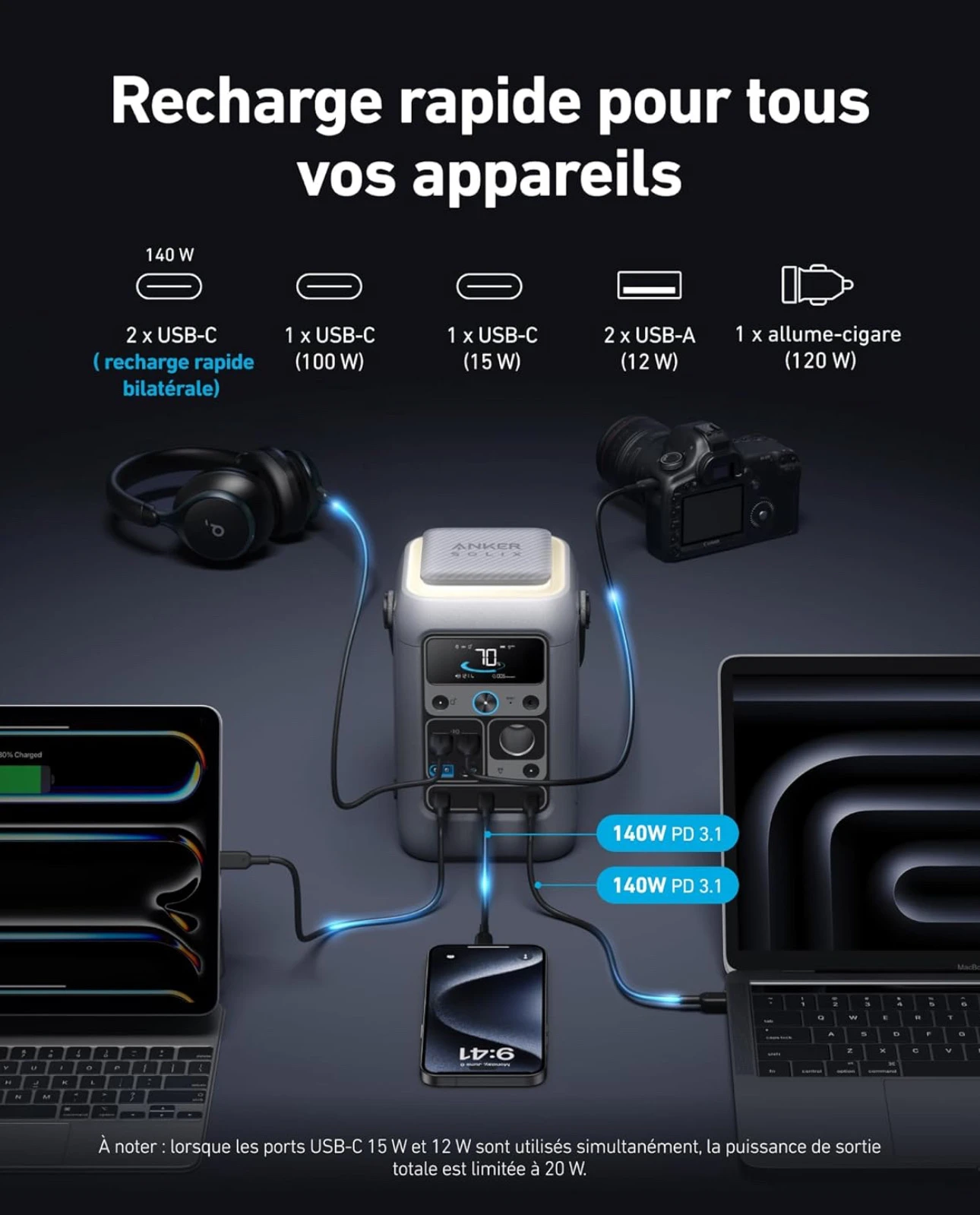 Idéale pour recharger smartphones, ordinateurs, appareils photo, petits électroménagers, etc.