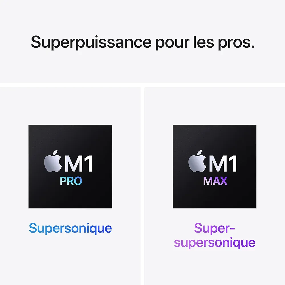 Ordinateur portable hautes performances doté de la puce Apple M1 Pro avec CPU 10 cœurs et GPU 16 cœurs, offrant une puissance exceptionnelle pour la productivité et la création. Son écran Liquid Retina XDR 14 pouces garantit des couleurs éclatantes et une précision remarquable, idéal pour les professionnels et les créateurs.