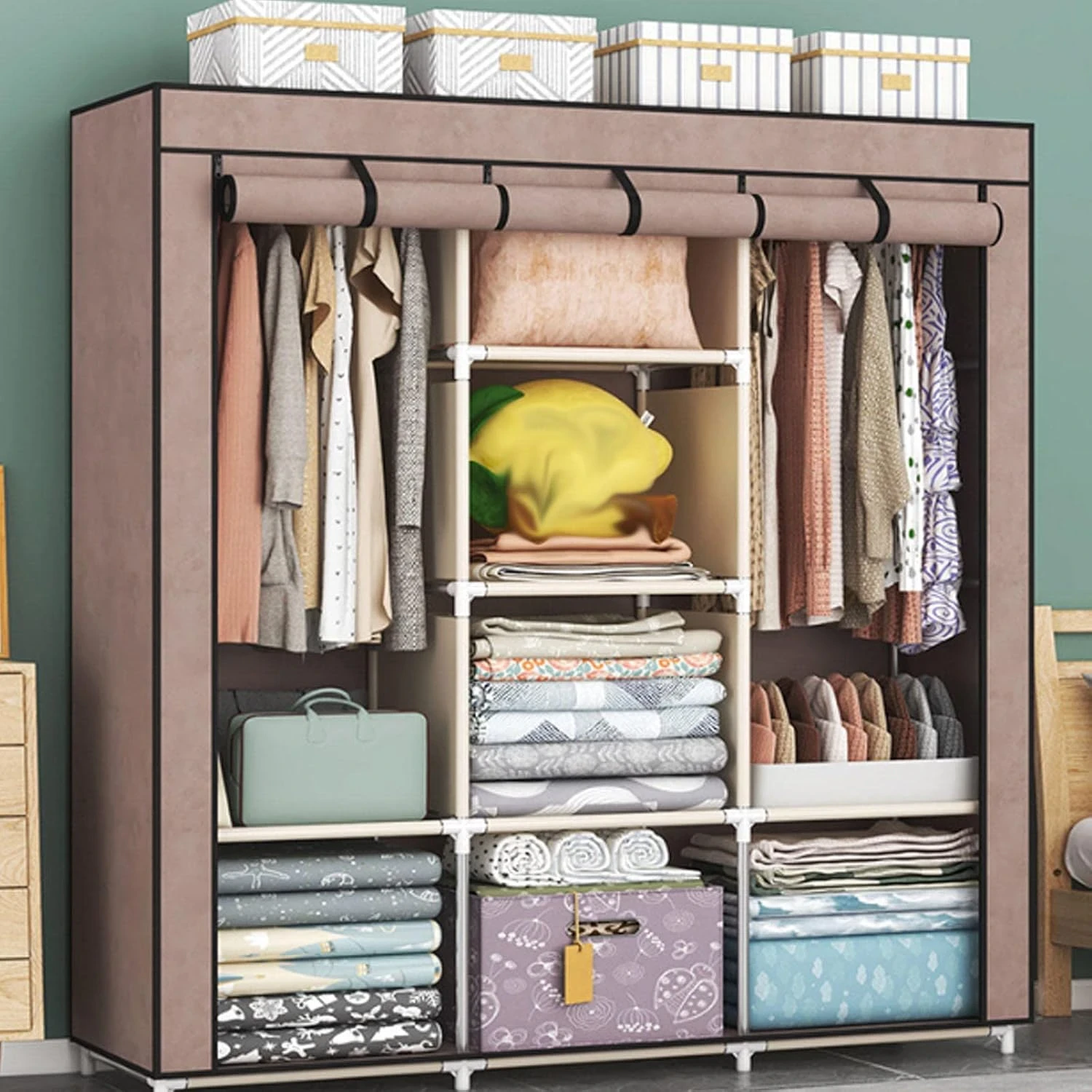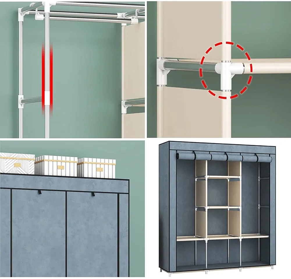 Organisez vos vêtements et accessoires avec style et praticité grâce à l’armoire portable JUNGEDUI. Conçue en tissu résistant avec une structure en métal, elle offre un espace de rangement optimisé pour votre chambre, salon ou dressing.