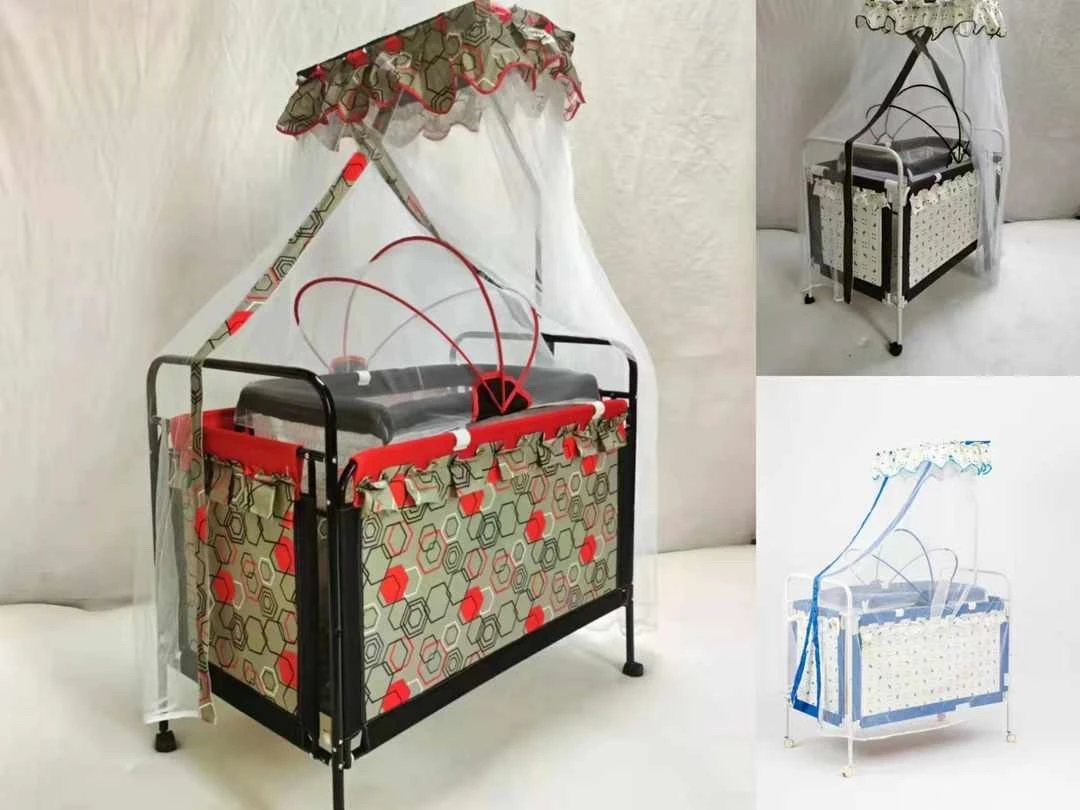 Offrez à votre bébé un sommeil paisible et sécurisé avec ce berceau multifonctionnel. Conçu pour allier confort et élégance, ce berceau est doté d’un cadre robuste en métal avec des finitions noires et des motifs colorés sur les côtés.