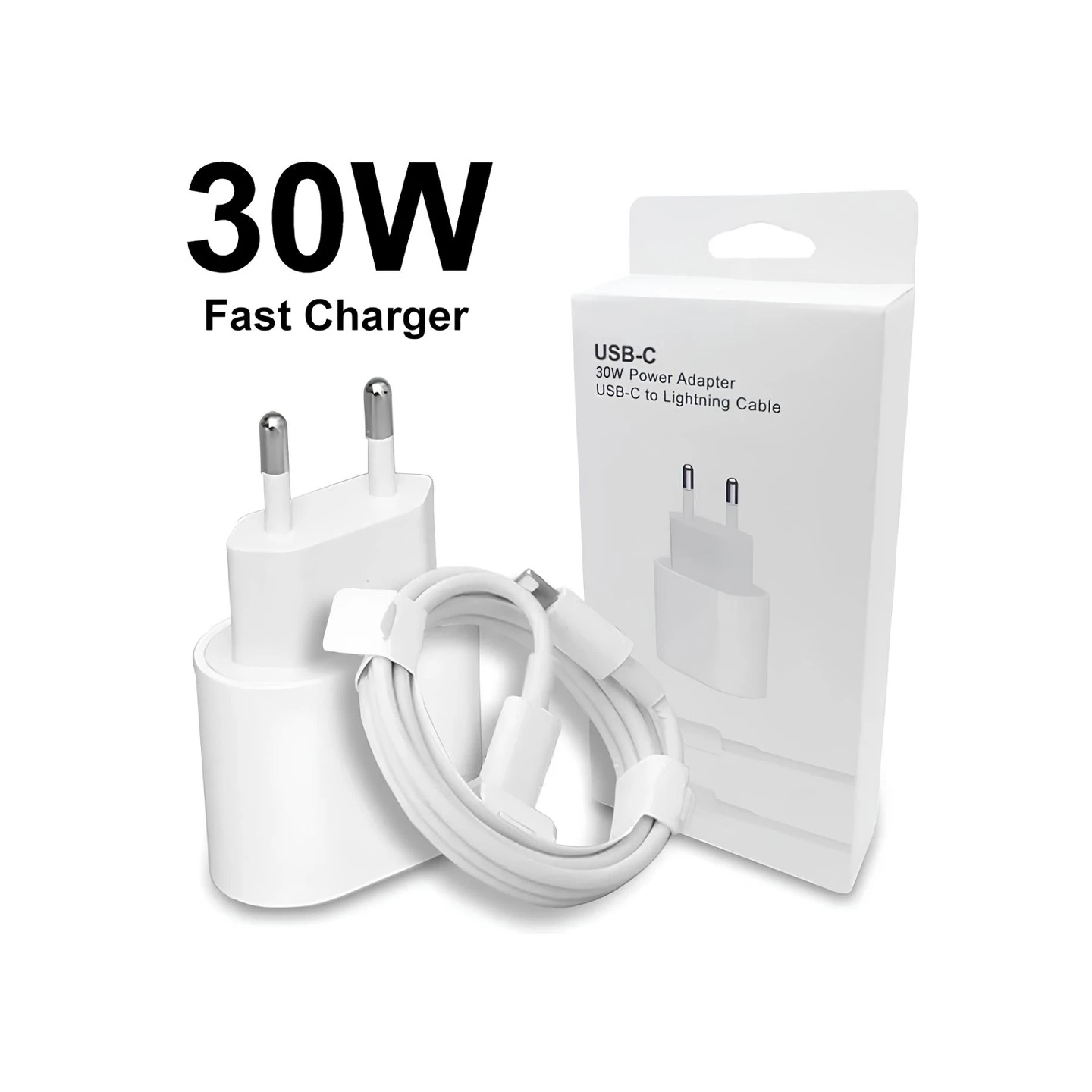 Chargez votre iPhone rapidement et en toute sécurité grâce à ce chargeur 30W avec câble Type-C vers Lightning. Compatible avec la charge rapide, il réduit considérablement le temps de recharge. Compact, puissant et pratique pour une utilisation à la maison ou en déplacement.