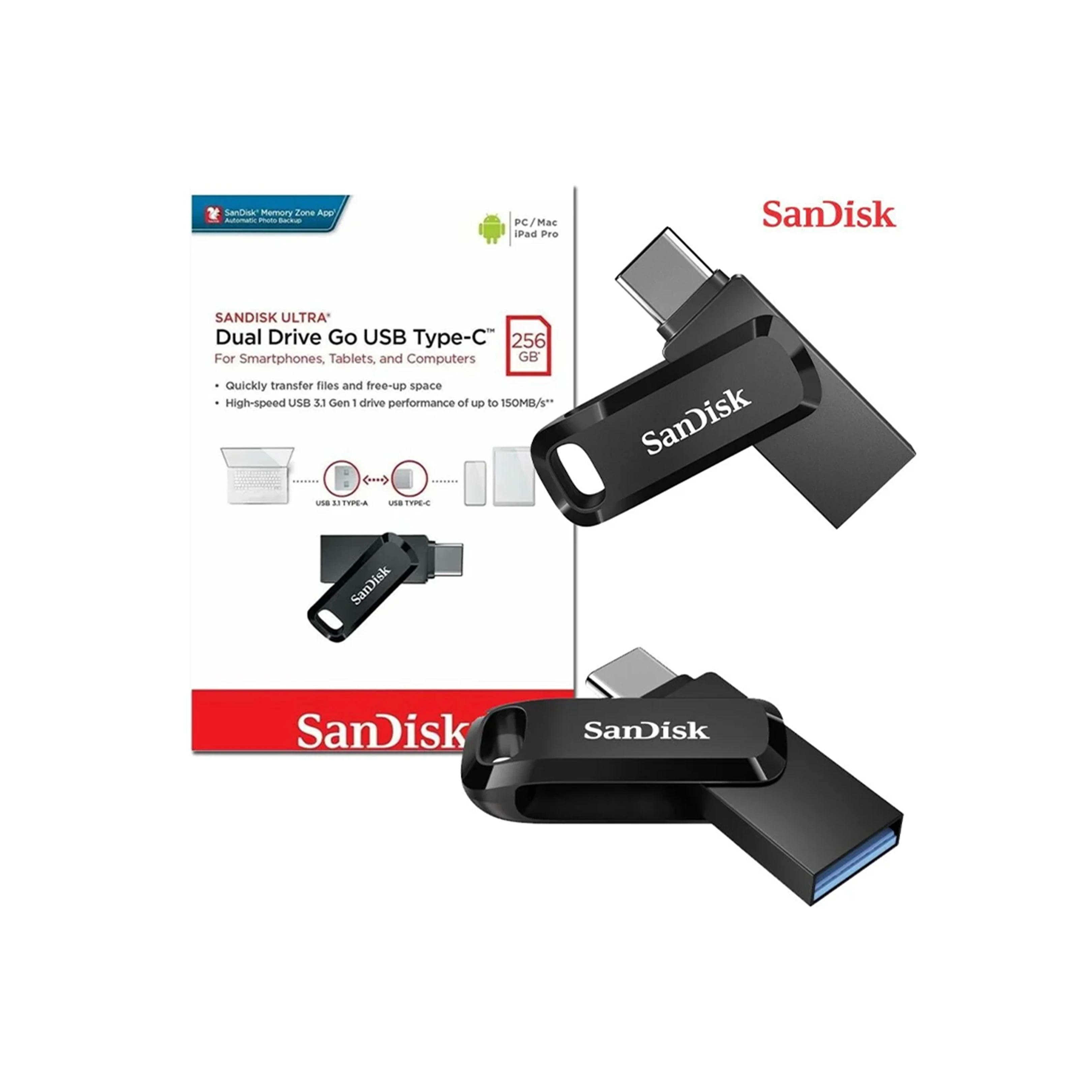 Stockez, transférez et partagez facilement vos fichiers avec cette clé USB SanDisk Ultra Dual Drive Go de 256 Go. Grâce à sa double connectique USB Type-C et USB Type-A, elle est compatible aussi bien avec les ordinateurs que les smartphones et tablettes. Idéale pour photos, vidéos, documents et fichiers volumineux, avec des vitesses de transfert rapides pour gagner du temps.