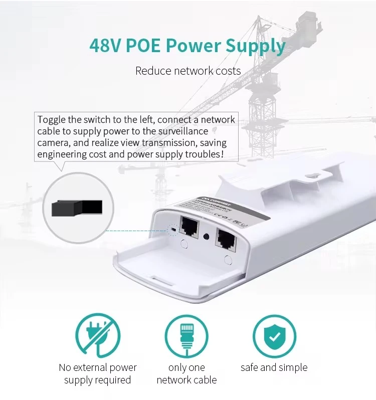 CF-E314N V2 est un pont sans fil de transmission longue distance extérieur, qui convient à la transmission de signaux sans fil dans les projets de surveillance de sécurité. Il prend en charge une distance de transmission de 5 kilomètres et un taux de transmission sans fil de 300Mbps. Il convient à la transmission de projet de surveillance dans les taches scéniques, les ports, les champs de pétrole, les chantiers de construction, etc.
