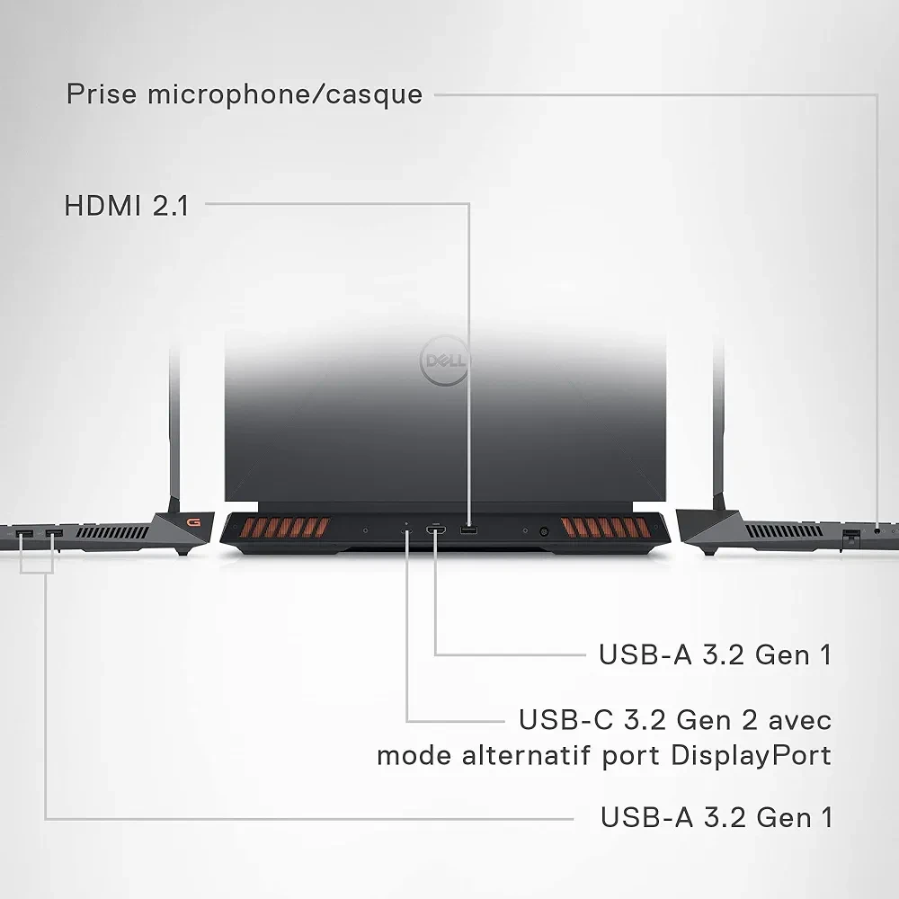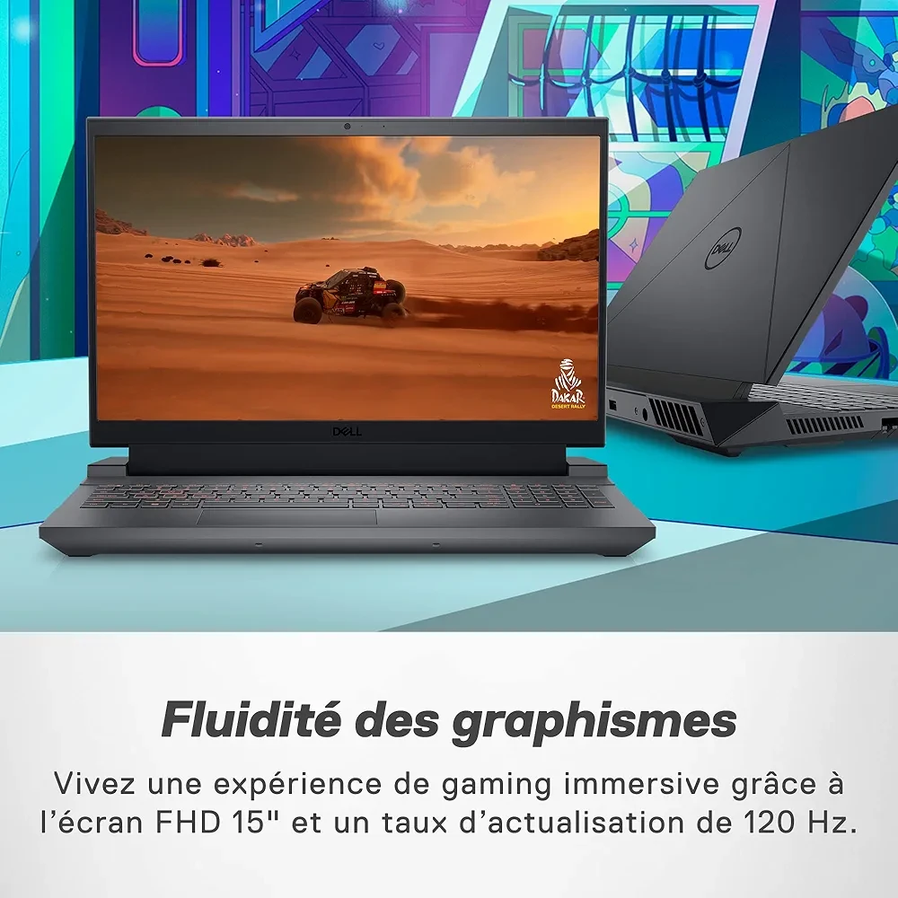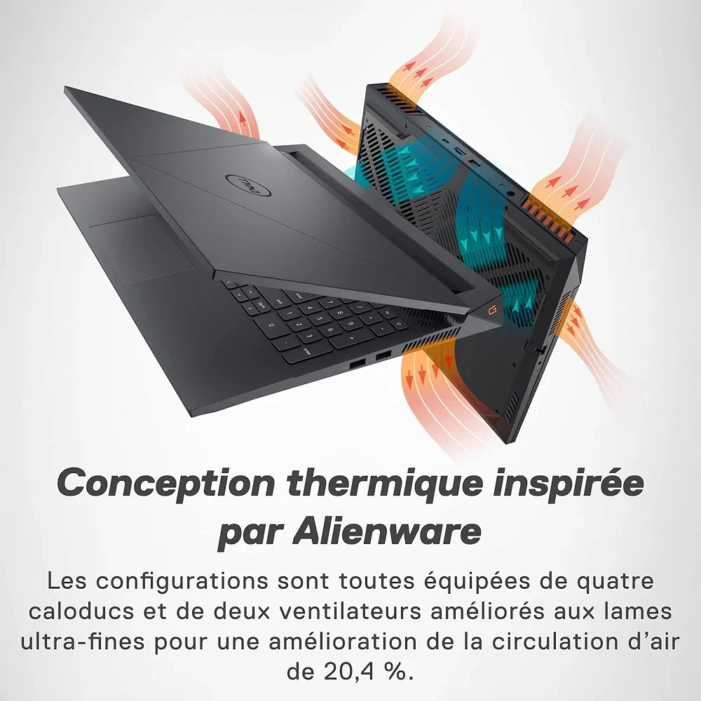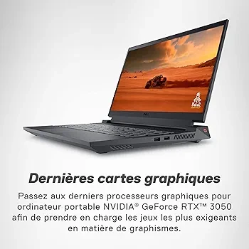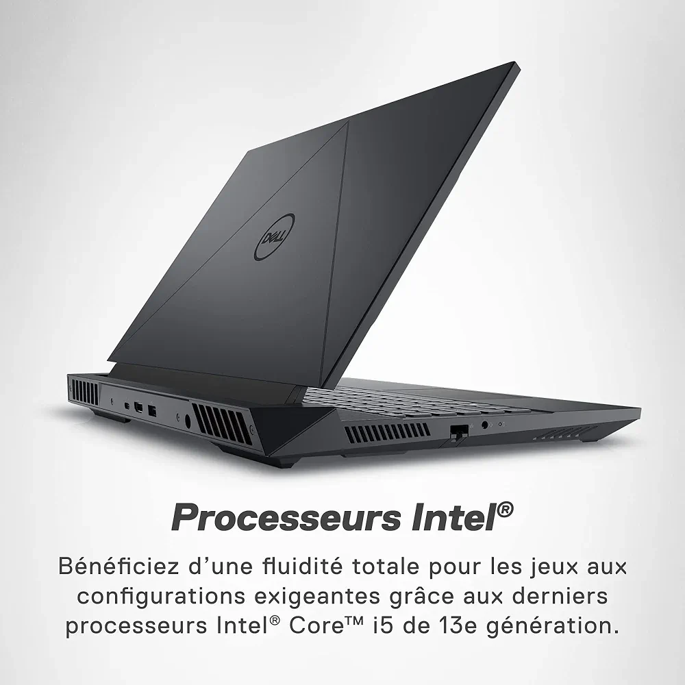 Découvrez le Dell G Series 15 5530, un ordinateur portable pensé pour les gamers exigeants. Doté d’un écran Full HD de 15,6 pouces avec un taux de rafraîchissement de 120 Hz, il offre une expérience de jeu immersive et fluide. Équipé d’un processeur IntelCore i5 à 2,8 GHz et d’un disque dur de 512 Go, il assure des performances fiables pour les jeux et le multitâche. Sa carte graphique NVIDIA GeForce RTX prend en charge les titres les plus gourmands en ressources graphiques, garantissant des visuels précis et réalistes. Inspirée des technologies Alienware, sa conception thermique innovante intègre quatre caloducs et deux ventilateurs à lames ultra-fines, améliorant la circulation d’air de 20,4 %. Enfin, avec le centre de commande Total Command, vous gardez un contrôle total sur les performances et les paramètres de votre machine. Disponible en coloris Dark Shadow Grey, ce portable allie puissance, design et confort d’utilisation pour les gamers passionnés.