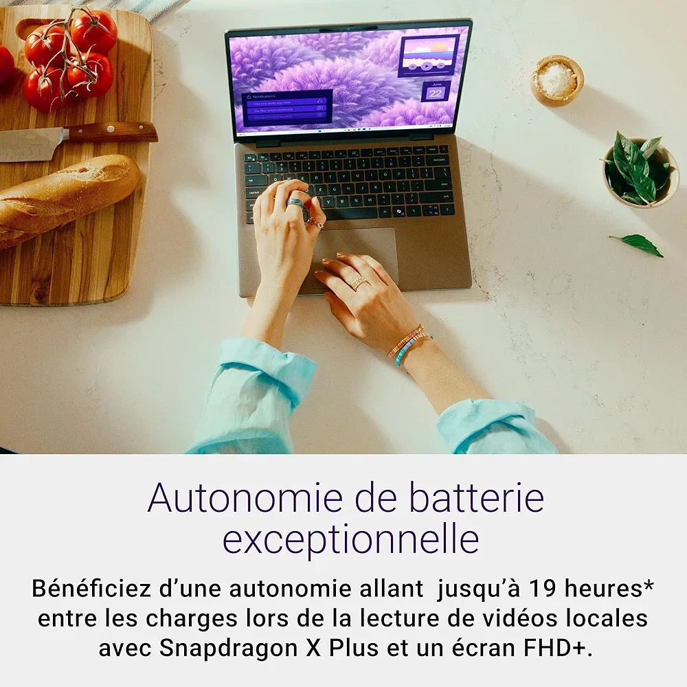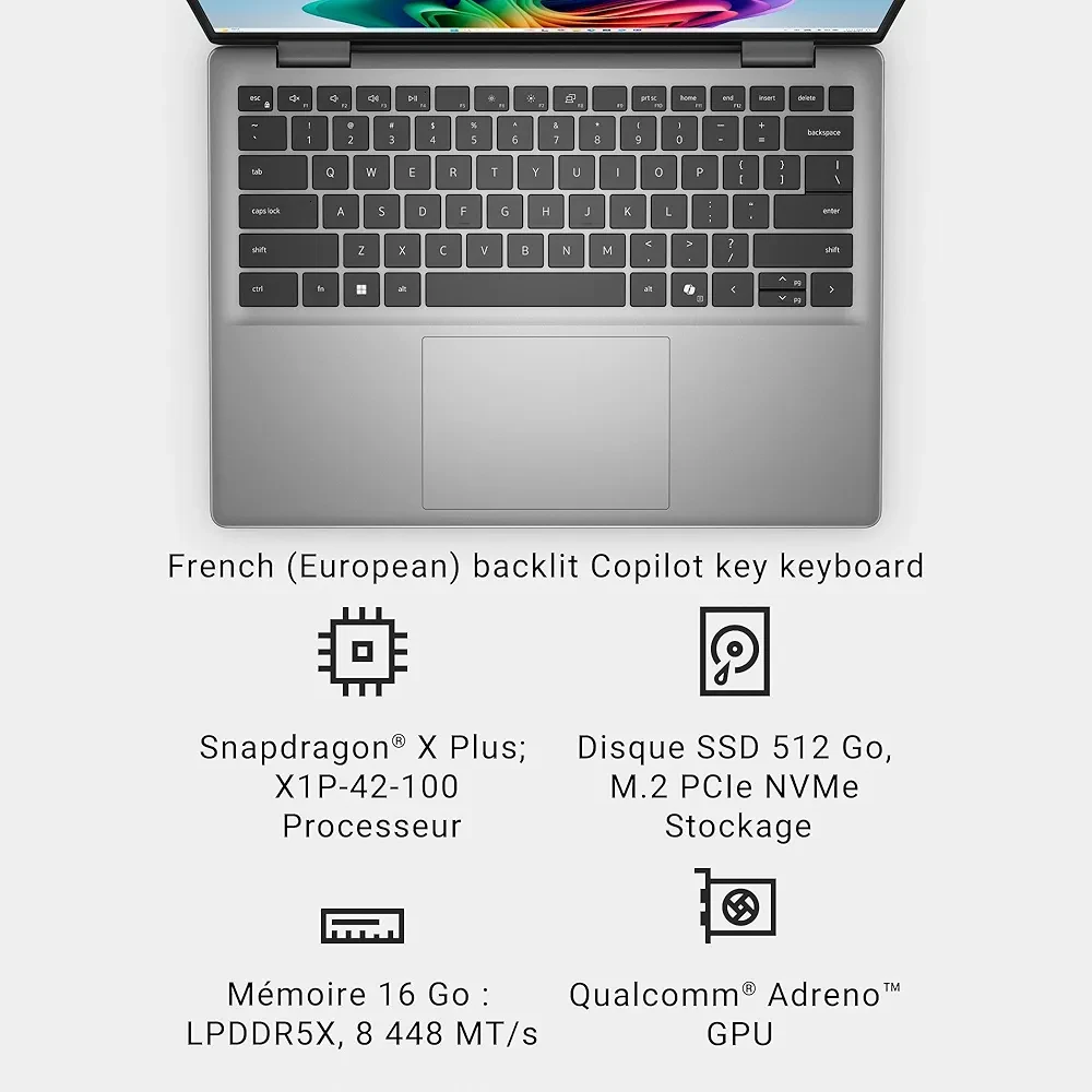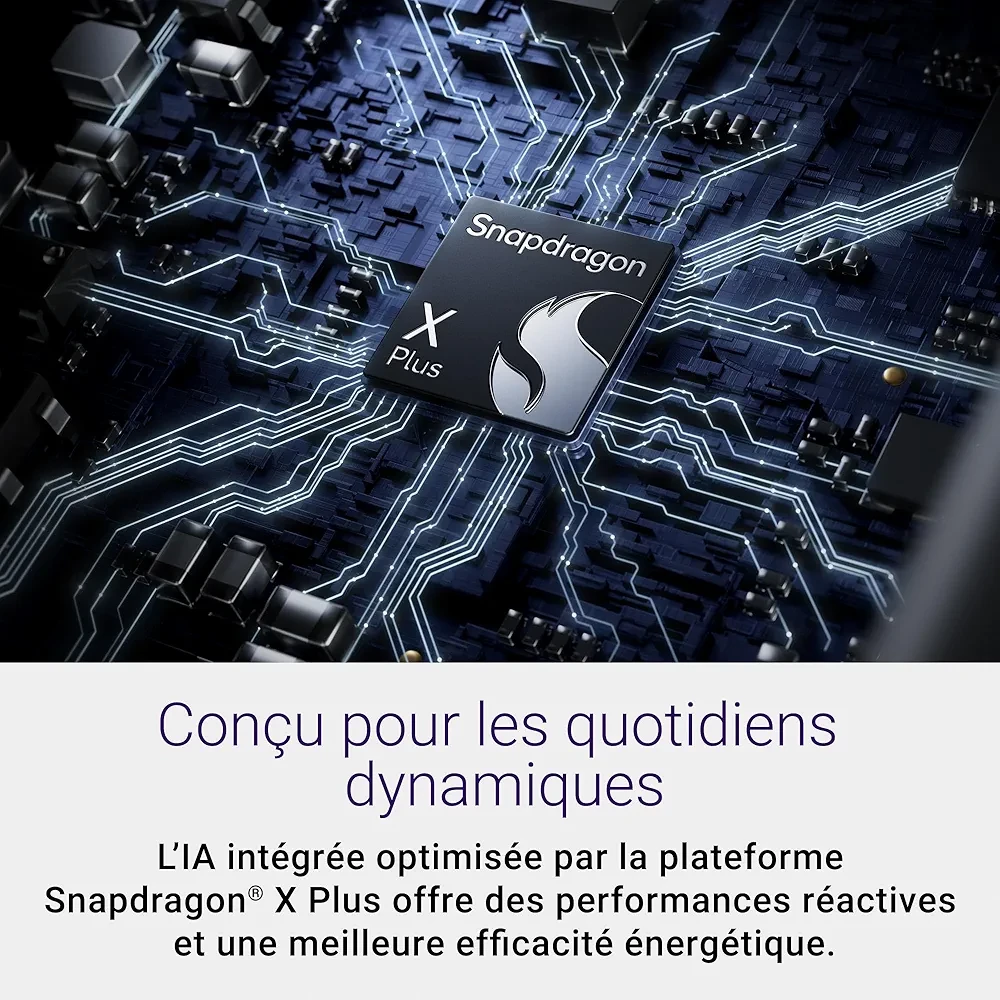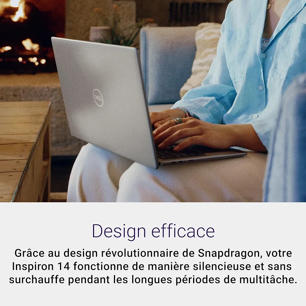 Le Dell Inspiron 14 5441 est un ordinateur portable moderne et performant conçu pour la productivité et la mobilité. Avec son écran 14" FHD+ lumineux et son processeur Snapdragon X Plus 8 cœurs avec IA intégrée, il offre une expérience fluide, réactive et économe en énergie. Sa conception fine et légère, associée à une autonomie prolongée, en fait le compagnon idéal pour travailler, étudier ou se divertir en toute liberté.