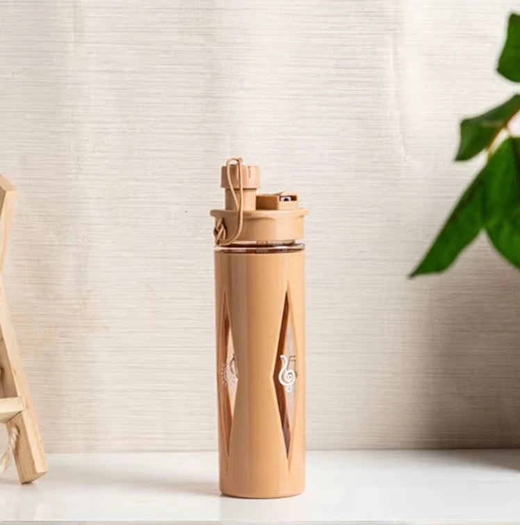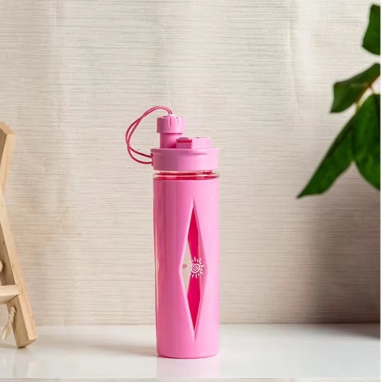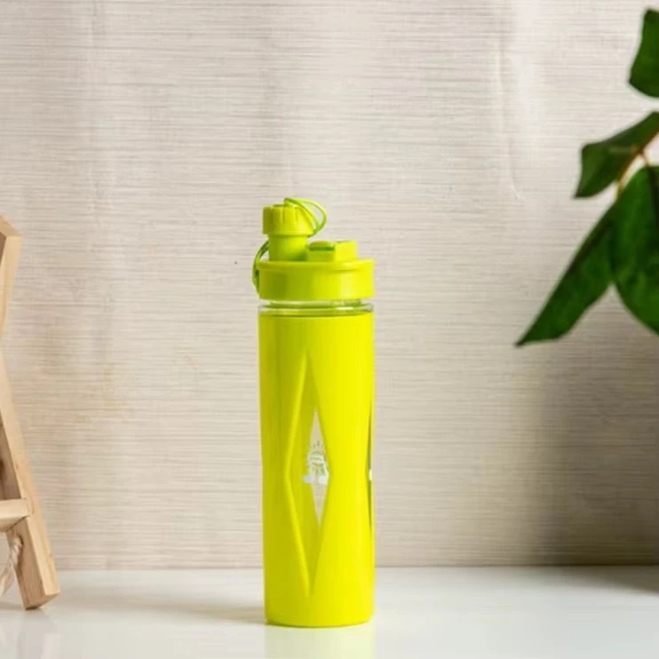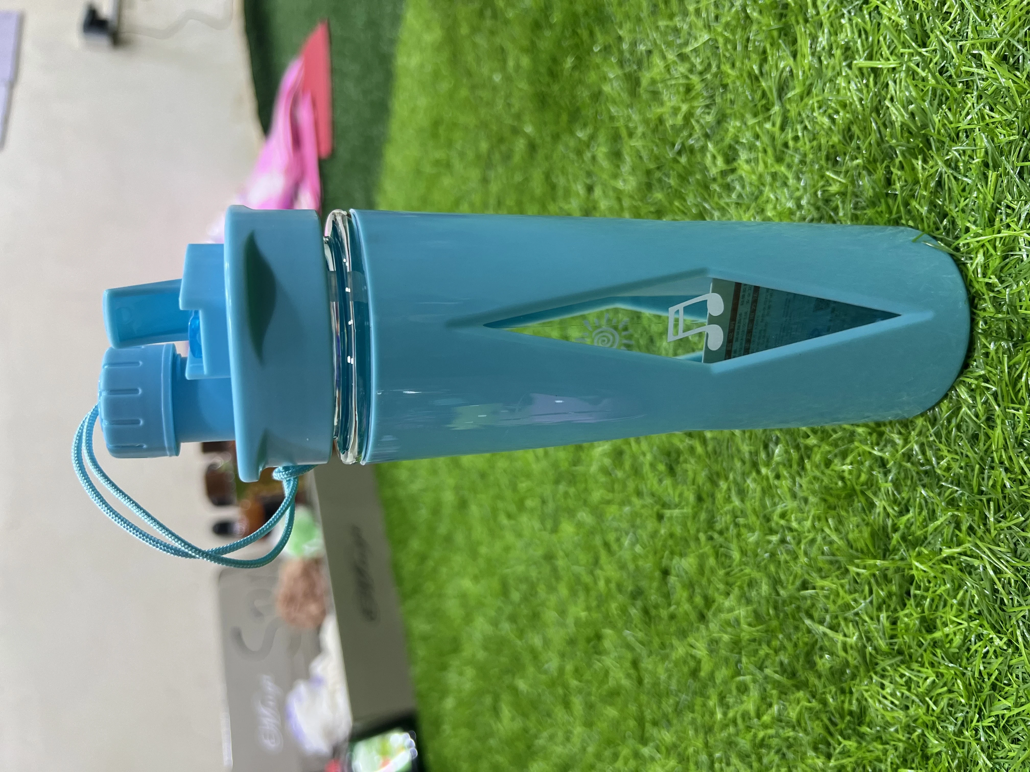 Bouteille d'eau en plastique avec paille et ficelle pour les écoliers et les amateurs de sport.