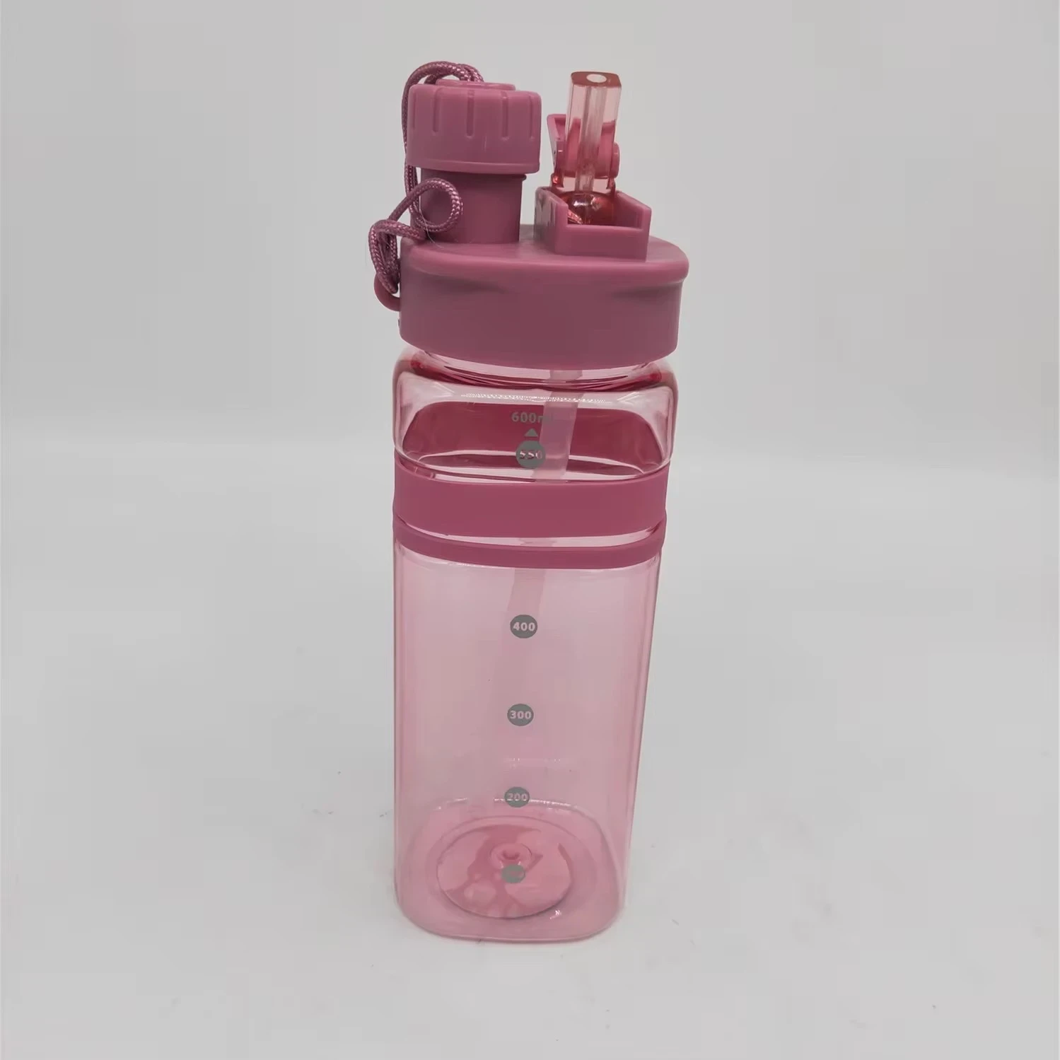 Bouteille d'eau en plastique, grand format avec couvercle en paille longue,700 ml