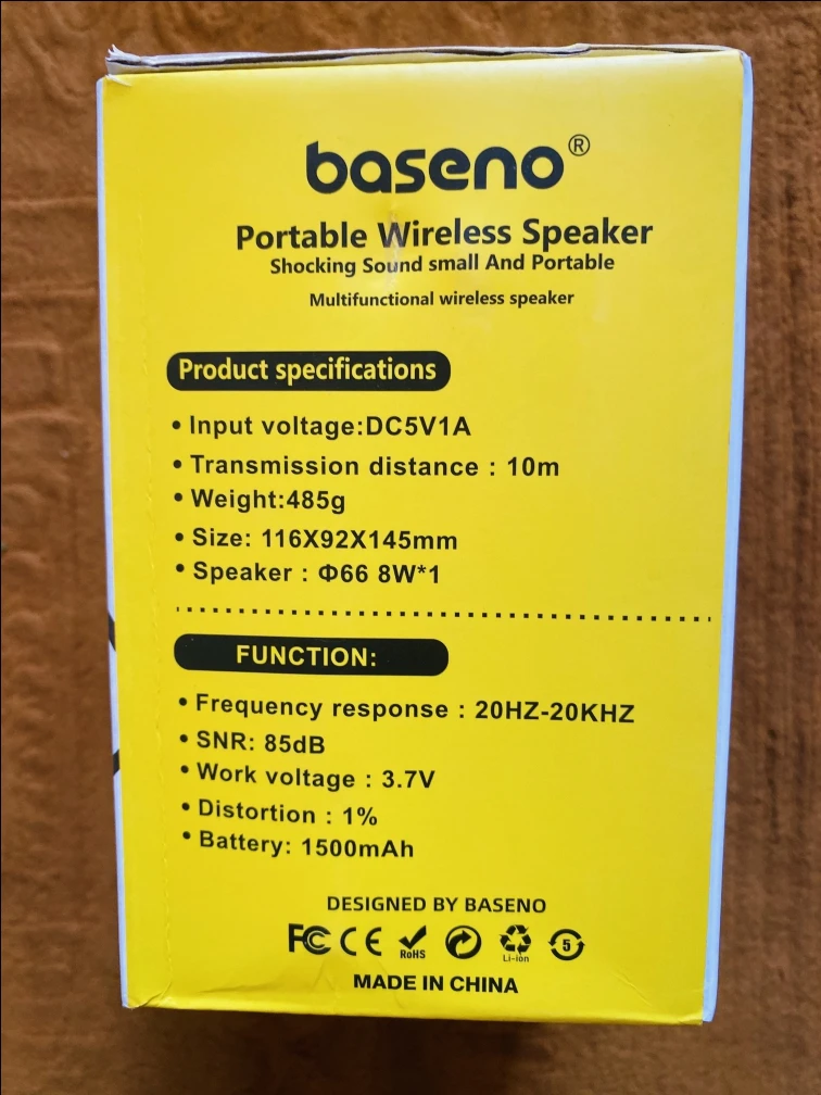 Haut-parleur sans fil Baseno BAS-10mini Super Bass.