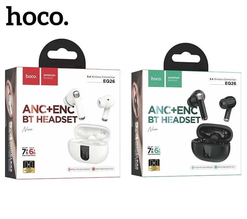 🎧 HOCO EQ26 – Écouteurs Sans Fil avec Réduction de Bruit ANC + ENC et Affichage LED Profitez d’un son d’exception avec les HOCO EQ26, des écouteurs sans fil pensés pour une expérience audio immersive et un confort optimal. Équipés de la réduction active du bruit (ANC) et de la suppression du bruit d’environnement (ENC), ils garantissent des appels clairs et une écoute sans distractions.