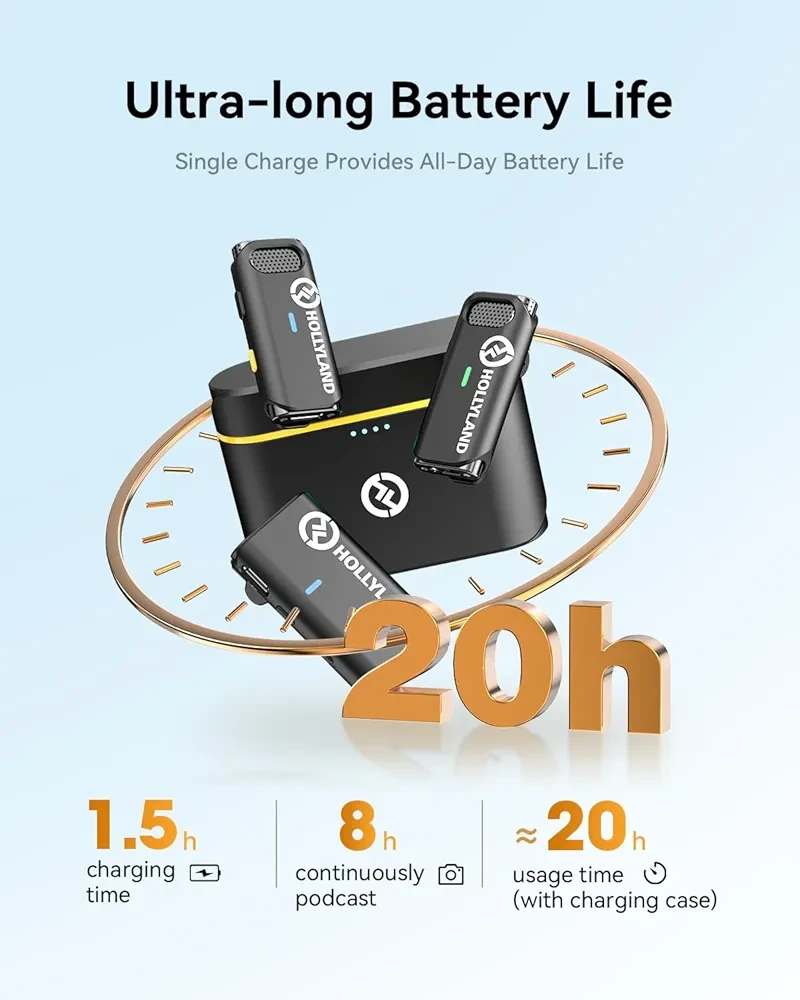 Le Hollyland Lark M1 est un système de microphones cravate sans fil compact et performant, parfait pour l’enregistrement audio clair et professionnel. Doté d’une portée allant jusqu’à 200 m et d’une autonomie de 20 heures, il intègre une technologie d’annulation active du bruit pour un son net même en environnement bruyant. Compatible avec DSLR, caméras, iPhone, Android et PC, ce kit Duo est idéal pour les interviews, vlogs, podcasts et tournages.