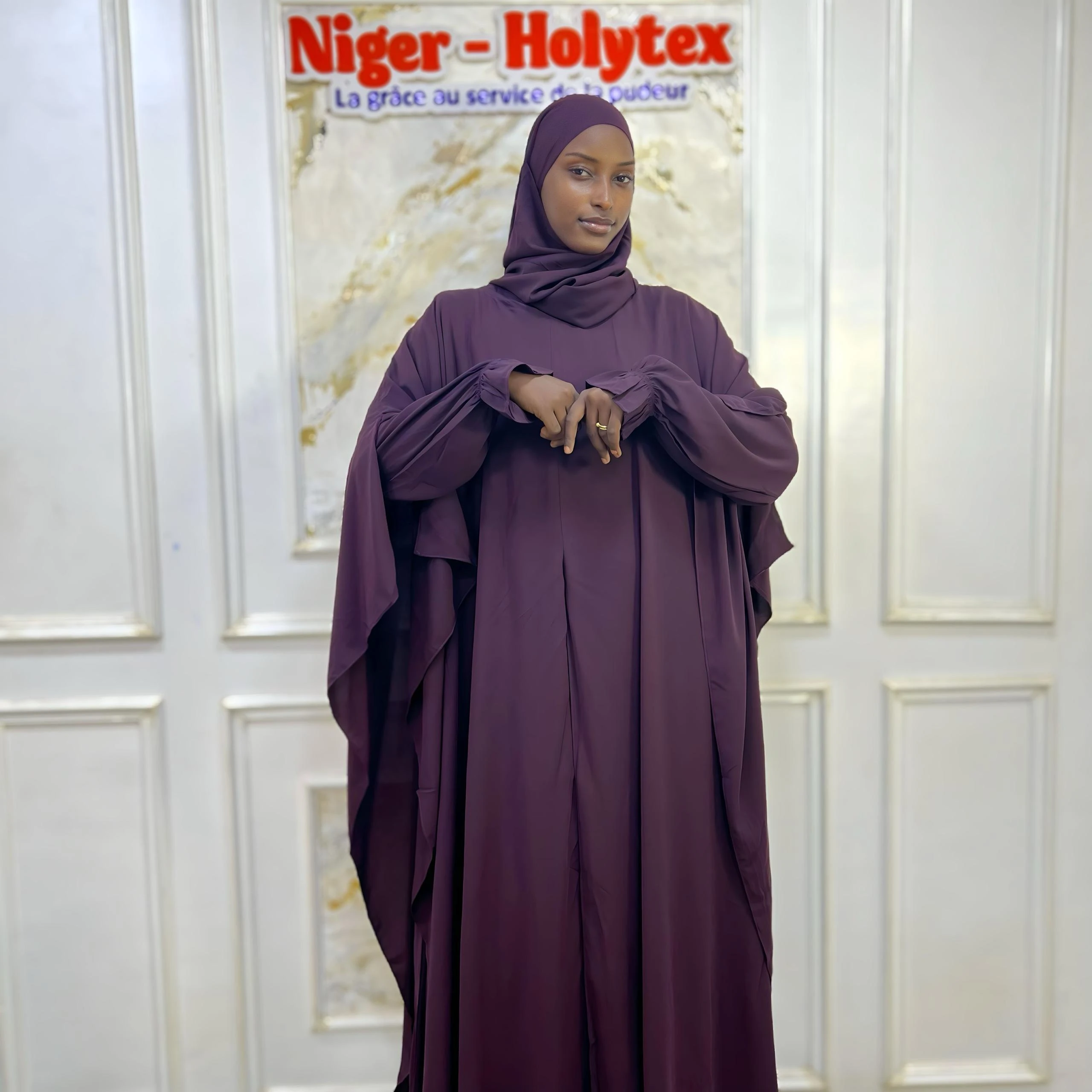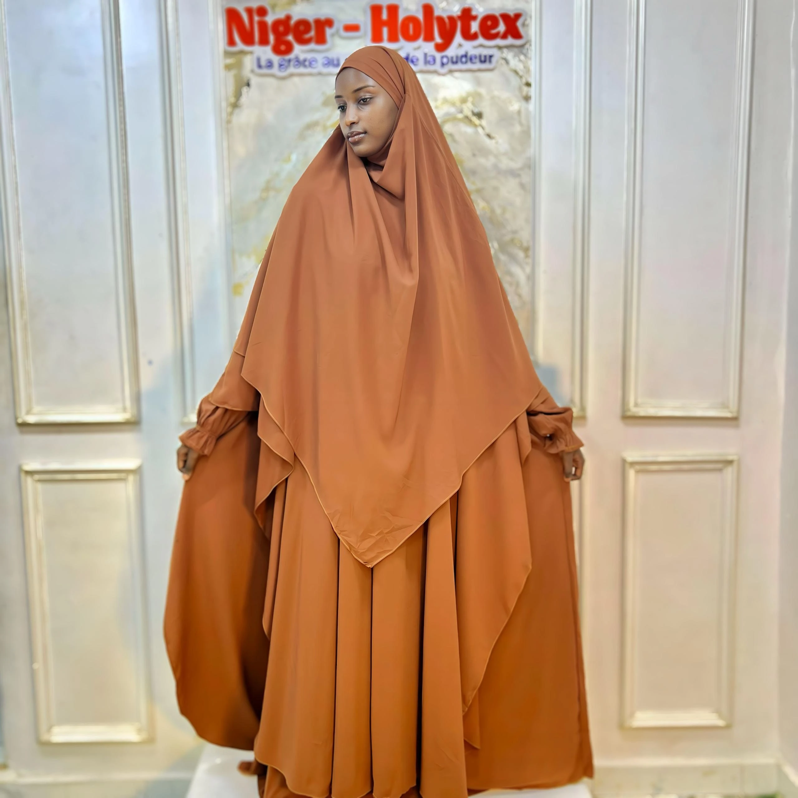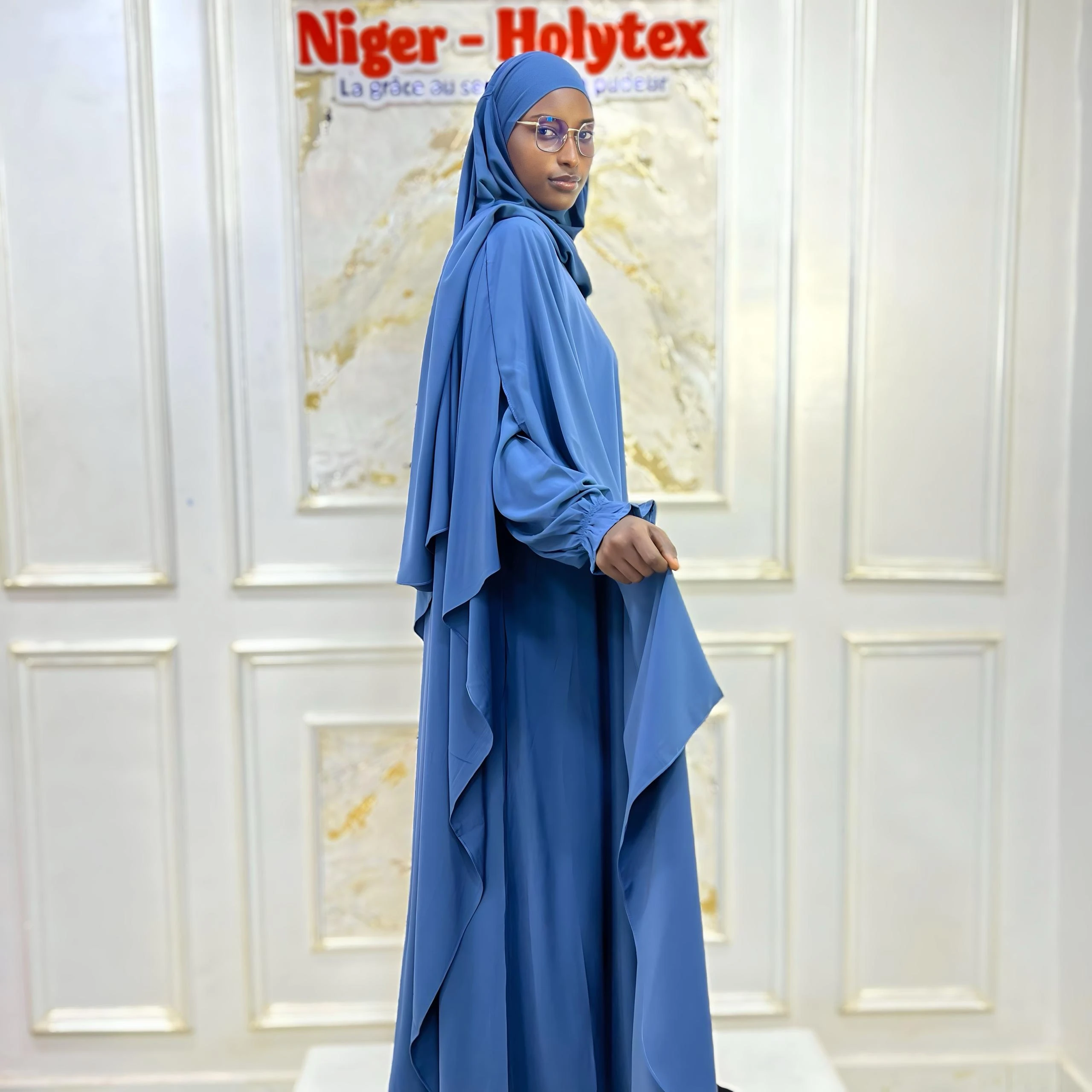 Composé d’une robe fluide, cape, khimar long et niqab, ce modèle te permet 3 styles différents selon ton envie.