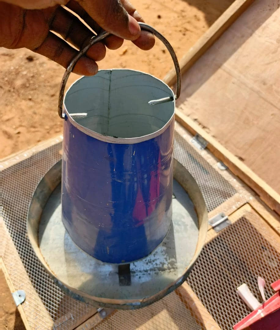 2. Mangeoire trémie petit modèle (2 kg) : parfait pour les poussins et petites quantités d’aliment.