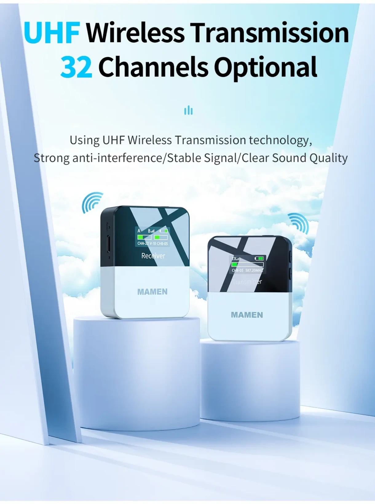 Système de microphone cravate double W1 UHF sans fil compatible avec les téléphones et Facebook Live, microphone haute performance