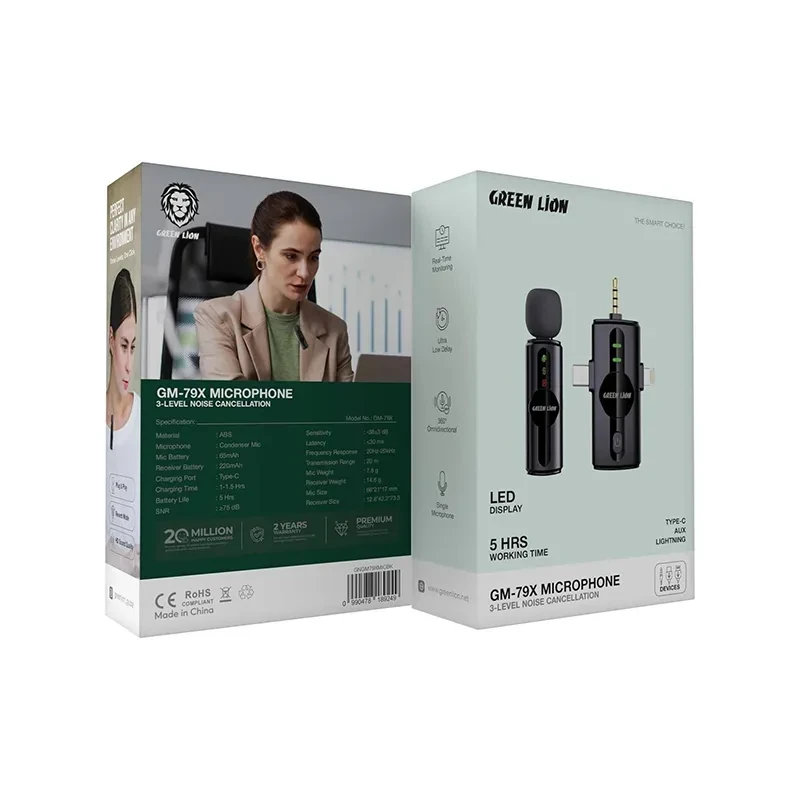 • Le paquet comprend le microphone Green Lion GM79X 3 en 1, un manuel d'utilisation pour une installation facile et un + .