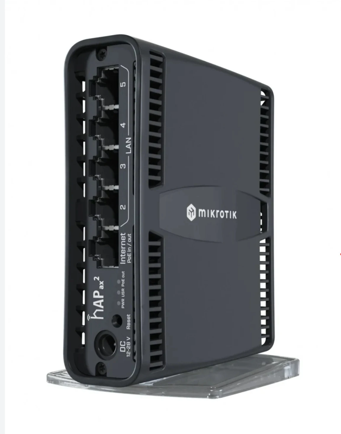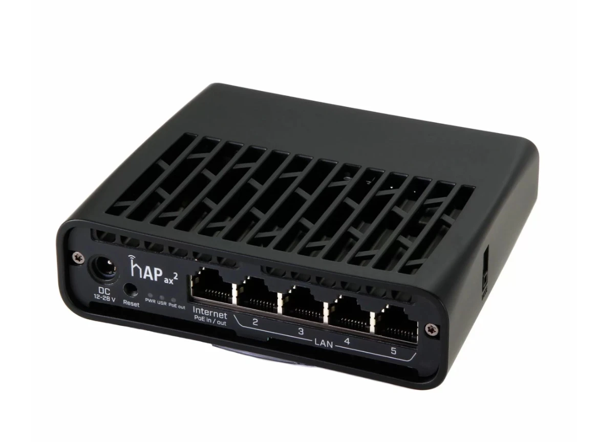 Le MikroTik hAP ax² est un routeur Wi-Fi 6 performant, équipé d’un processeur puissant, de ports Gigabit, et offrant une couverture sans fil rapide et stable en 2,4 GHz et 5 GHz, idéal pour les maisons et petits bureaux.
