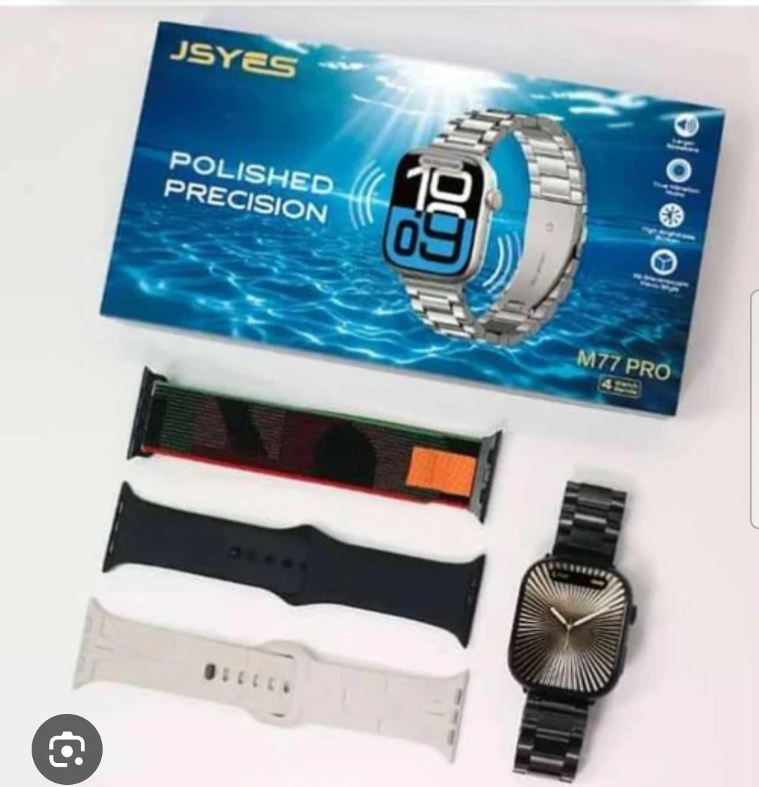 Notre smartwatch M77 Pro , avec 4 bracelets c'est bien plus qu'une simple montre. Avec son écran tactile intuitif, son design élégant et ses nombreuses fonctionnalités, elle s'adapte à ton style de vie. Suivi d'activité, notifications, appels Bluetooth, contrôle de la musique...