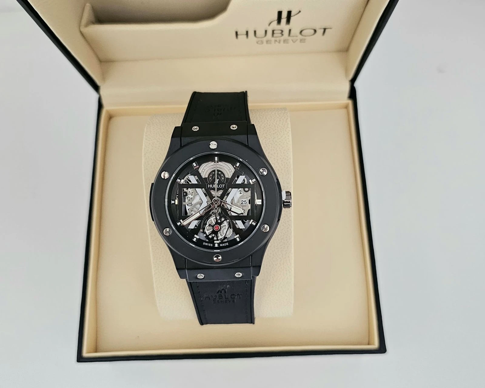 ✨ Hublot – L’innovation au service du style ✨ Cette montre Hublot Genève reflète une parfaite symbiose entre modernité et excellence horlogère. Son boîtier en acier inoxydable, aux finitions soignées, s’associe à un bracelet en silicone souple et résistant, offrant confort et durabilité. 🔹 Cadran élégant aux détails précis 🔹 Mouvement apparent, gage de technicité et de précision 🔹 Étanche et robuste, conçue pour accompagner chaque instant 🔹 Un design affirmé qui exprime dynamisme et élégance