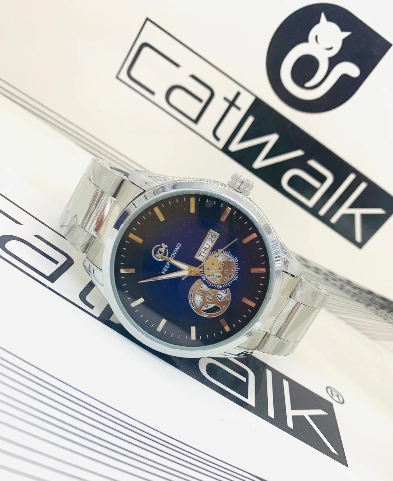 La montre KEEP MOVING se distingue par son bracelet en acier inoxydable alliant robustesse et élégance. Conçue pour résister aux épreuves du temps, elle est étanche et particulièrement durable. Son cadran bleu raffiné en fait un accessoire intemporel, parfaitement adapté à tout type d’événement, qu’il soit formel ou décontracté.
