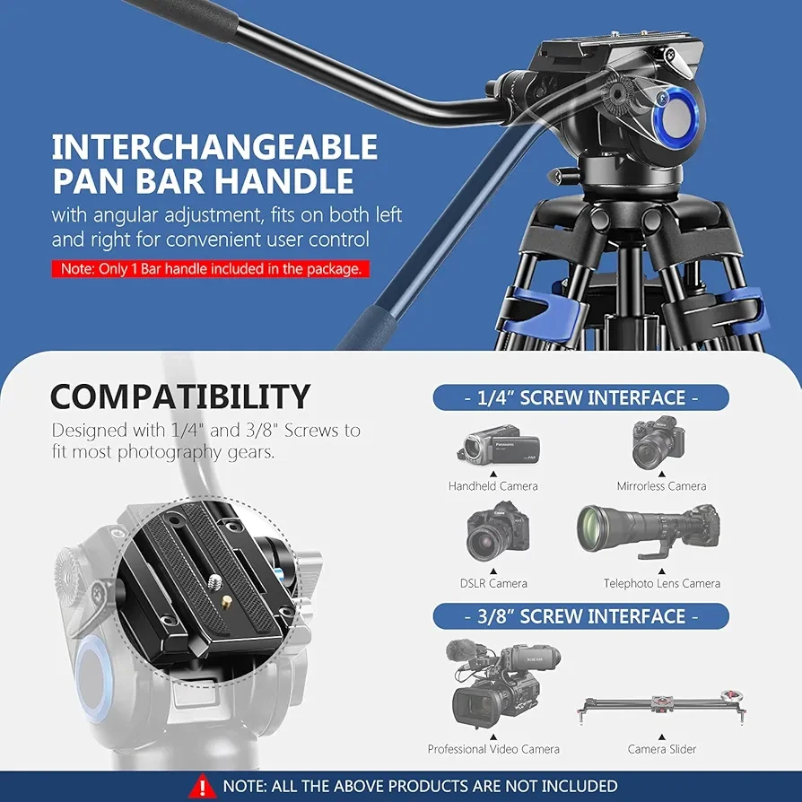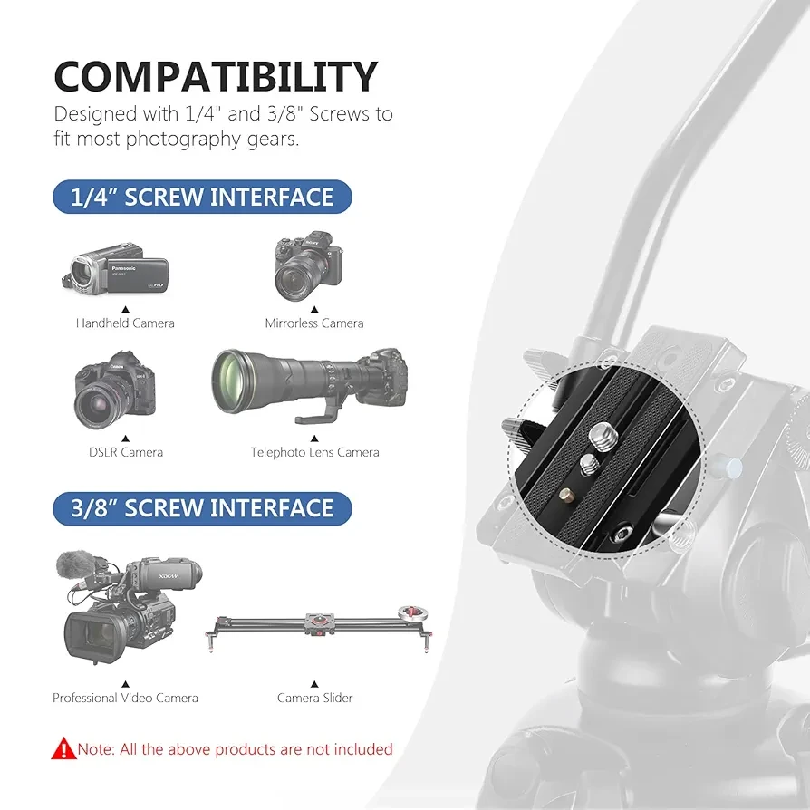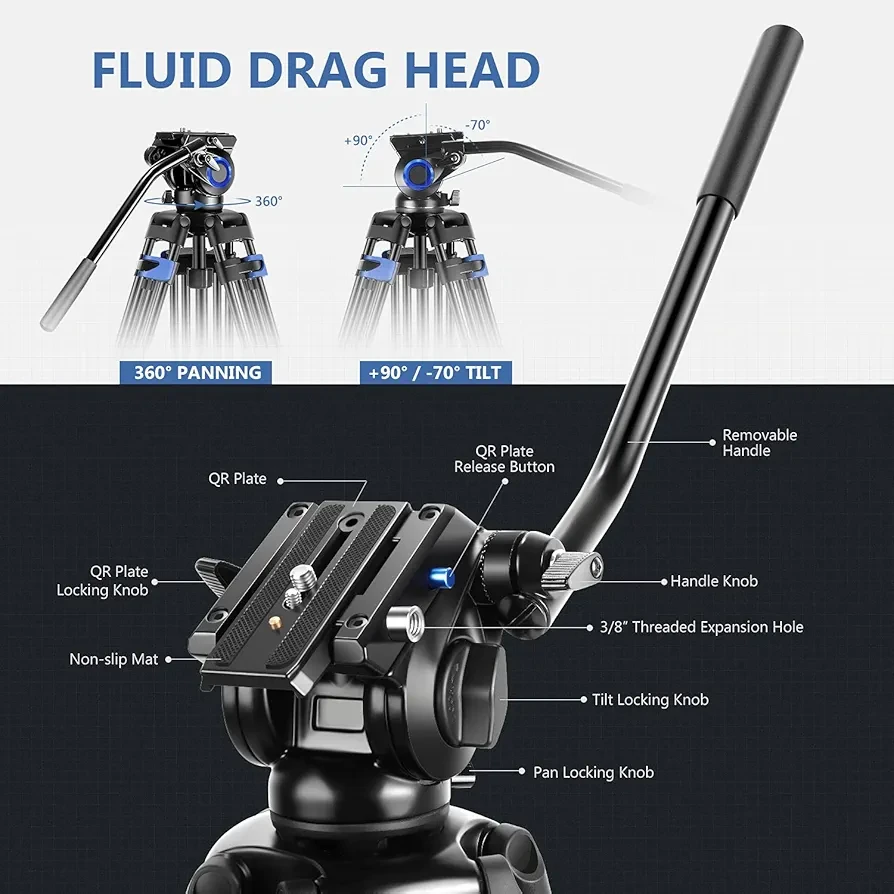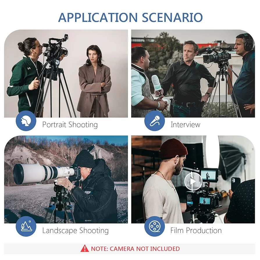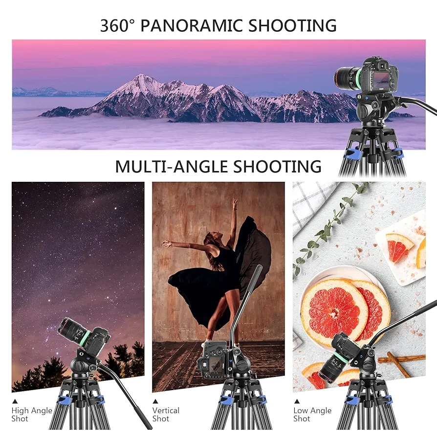 Grâce à sa construction robuste (5,42 kg), il peut supporter efficacement une large gamme de caméras DSLR, hybrides et accessoires photo/vidéo, tout en restant pratique à transporter grâce à son format pliable. La tête fluide intégrée permet des mouvements doux et précis, idéale pour la capture de vidéos stables et de photos nettes.