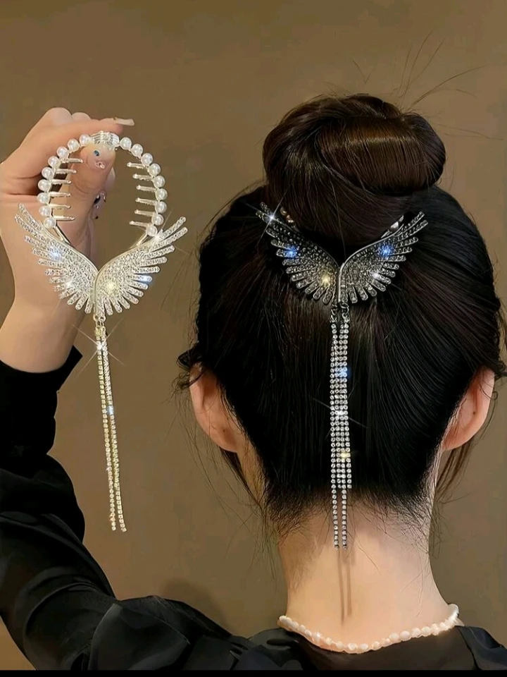 Apporte originalité et douceur à ta coiffure avec cette pince à cheveux unique. Inspirée des ailes d’anges, elle se distingue par son design raffiné accompagné de fines franges délicates qui ajoutent du mouvement et du charme à ta mise en beauté. Parfaite pour sublimer un chignon, une demi-queue ou des cheveux lâchés lors d’occasions spéciales ou dans ton quotidien.