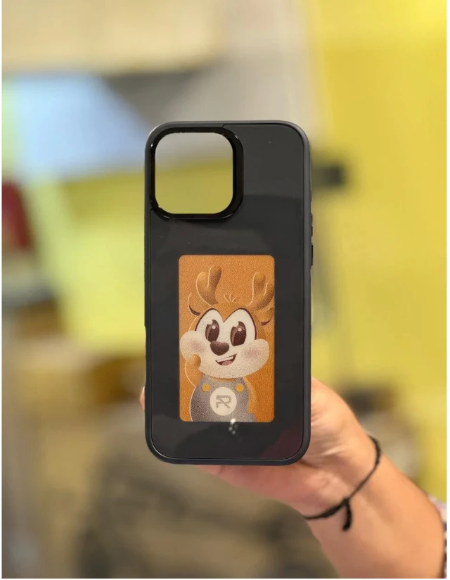 Une coque de téléphone avec un écran E-Ink intégré, qui utilise la technologie NFC pour afficher des images. La coque est compatible avec les téléphones qui prennent en charge la technologie NFC. Elle permet aux utilisateurs de changer l'image affichée au dos de la coque via une application. La coque utilise la technologie E-Ink, ce qui signifie qu'elle consomme très peu d'énergie et n'a pas besoin d'être alimentée en permanence pour maintenir l'image. Les utilisateurs peuvent choisir parmi des images prédéfinies ou télécharger leurs propres photos pour personnaliser la coque. Disponible pour iPhone 14 promax, 15 promax, 16 simple, 16 plus et 16 promax. Disponible aussi pour les Samsung Galaxy s23 ultra et s24 ultra