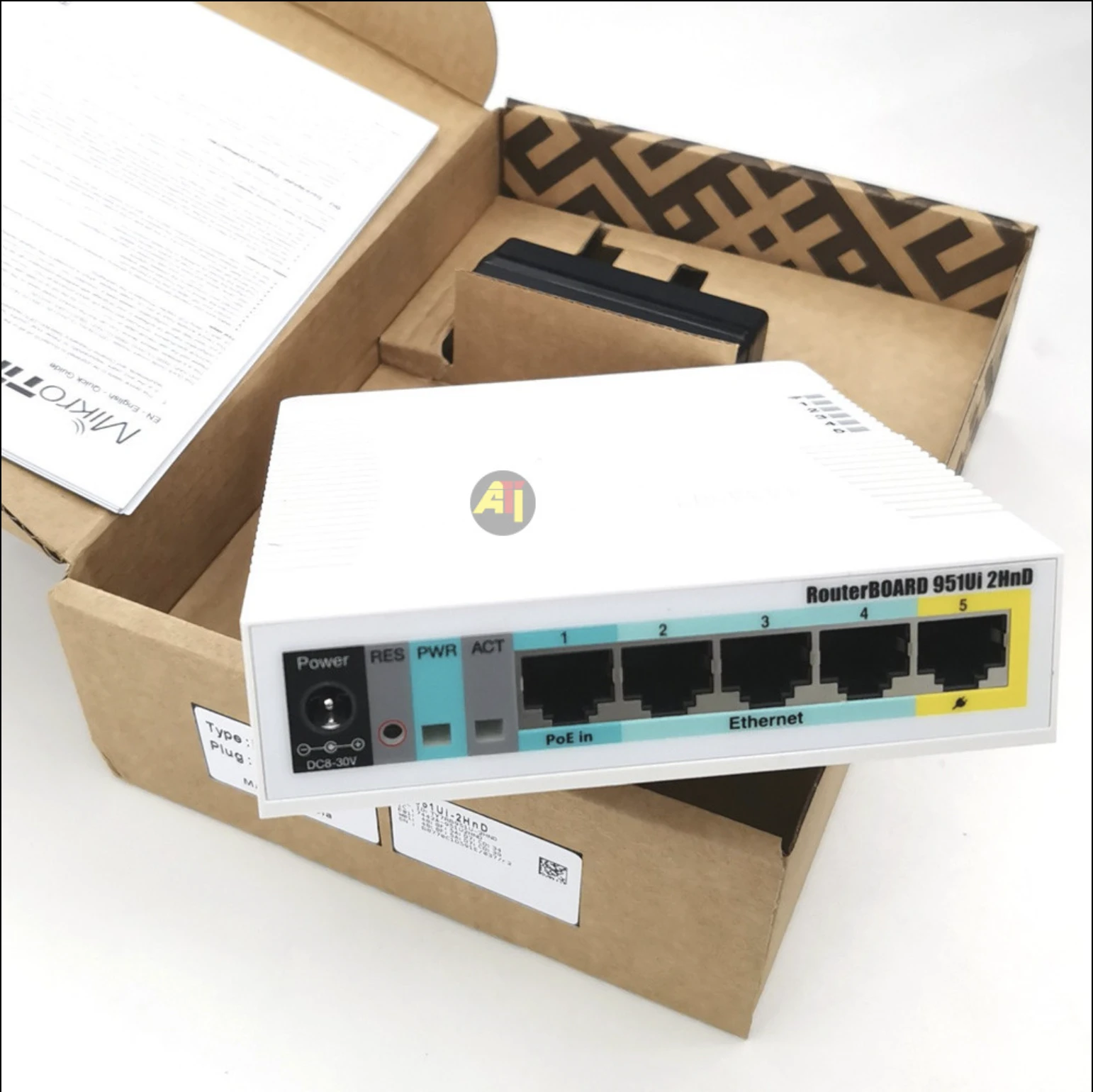 Le MikroTik RB951Ui-2HnD est un routeur sans fil proposant 5 ports Ethernet dont 1 en PoE Out (permet d'alimenter par exemple une NanoStation), 1 port USB 2.0 et un point d'accès 2.4 GHz avec antennes intégrées. Il est également possible de remplacer une antenne par celle de votre choix (connecteur MMCX). Le design compact et discret du RB951Ui-2HnD le rend idéal pour le bureau comme pour la maison. Il intègre des trous pour fixation murale.