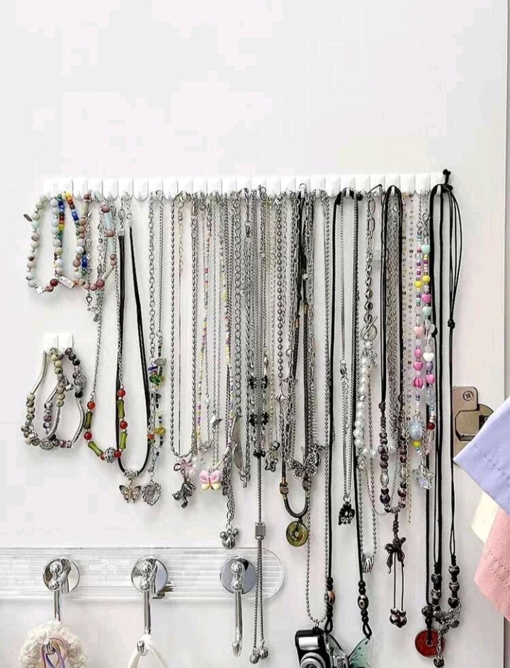 Mini accessoire de rangement mural pour bijoux : compact et pratique, ce support mural est idéal pour organiser vos colliers, bracelets, bagues et boucles d’oreilles sans encombrer votre espace. Avec son design minimaliste, il s’intègre facilement à votre décoration tout en gardant vos bijoux à portée de main.