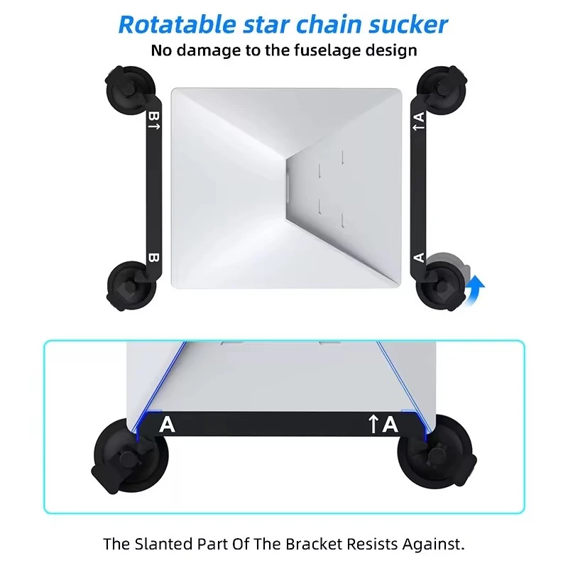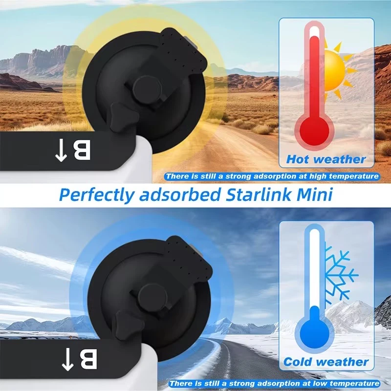 Forte puissance d'aspiration : équipé de quatre ventouses puissantes, ce support fixe solidement votre Starlink Mini pour éviter de glisser ou de tomber, même sur des routes accidentées ou cahoteuses.
