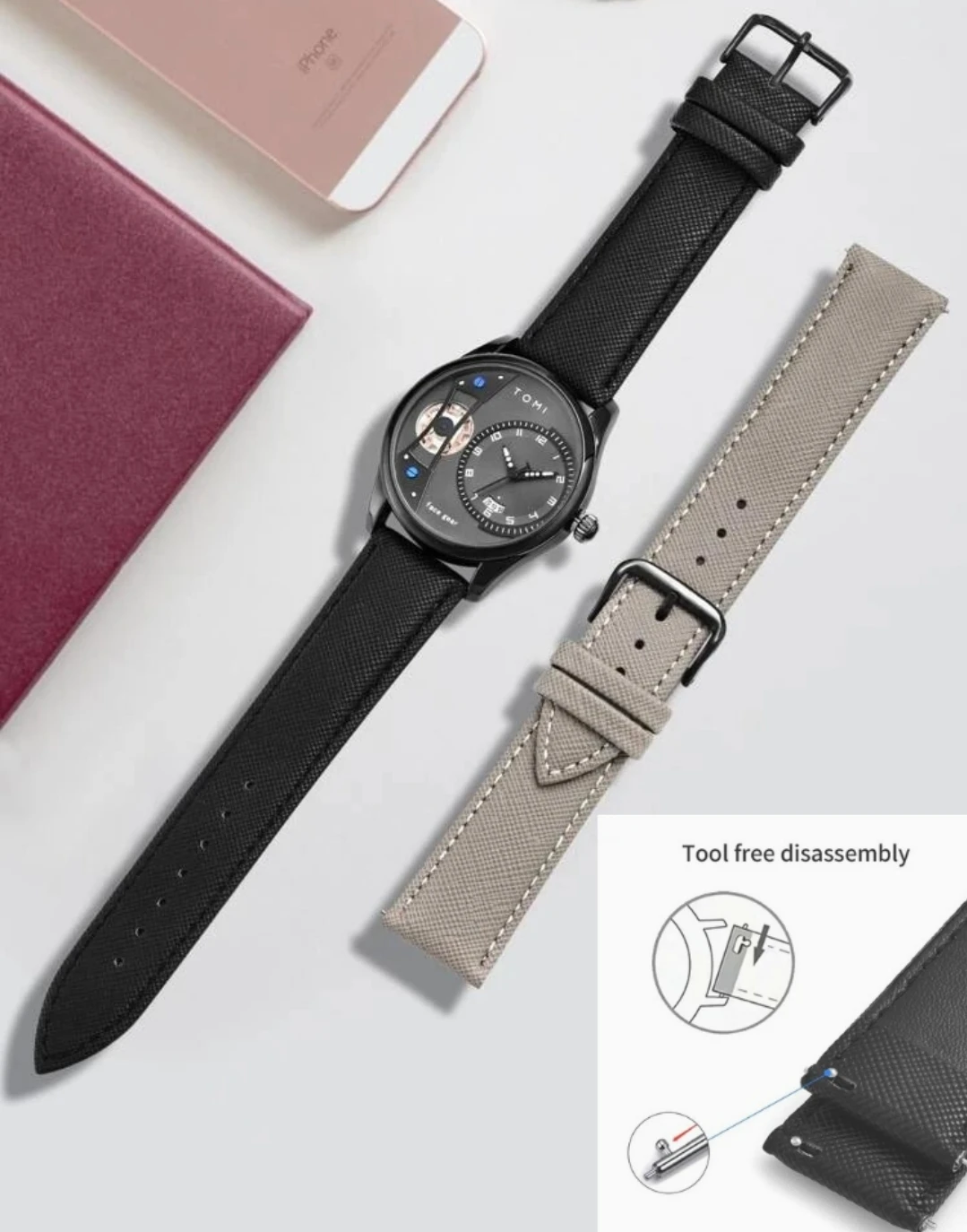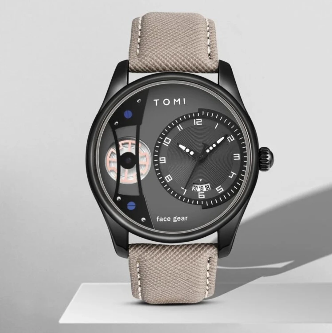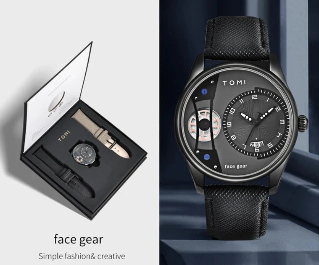 Montre de luxe Tomi Face Gear T-105 pour homme – Coffret élégant