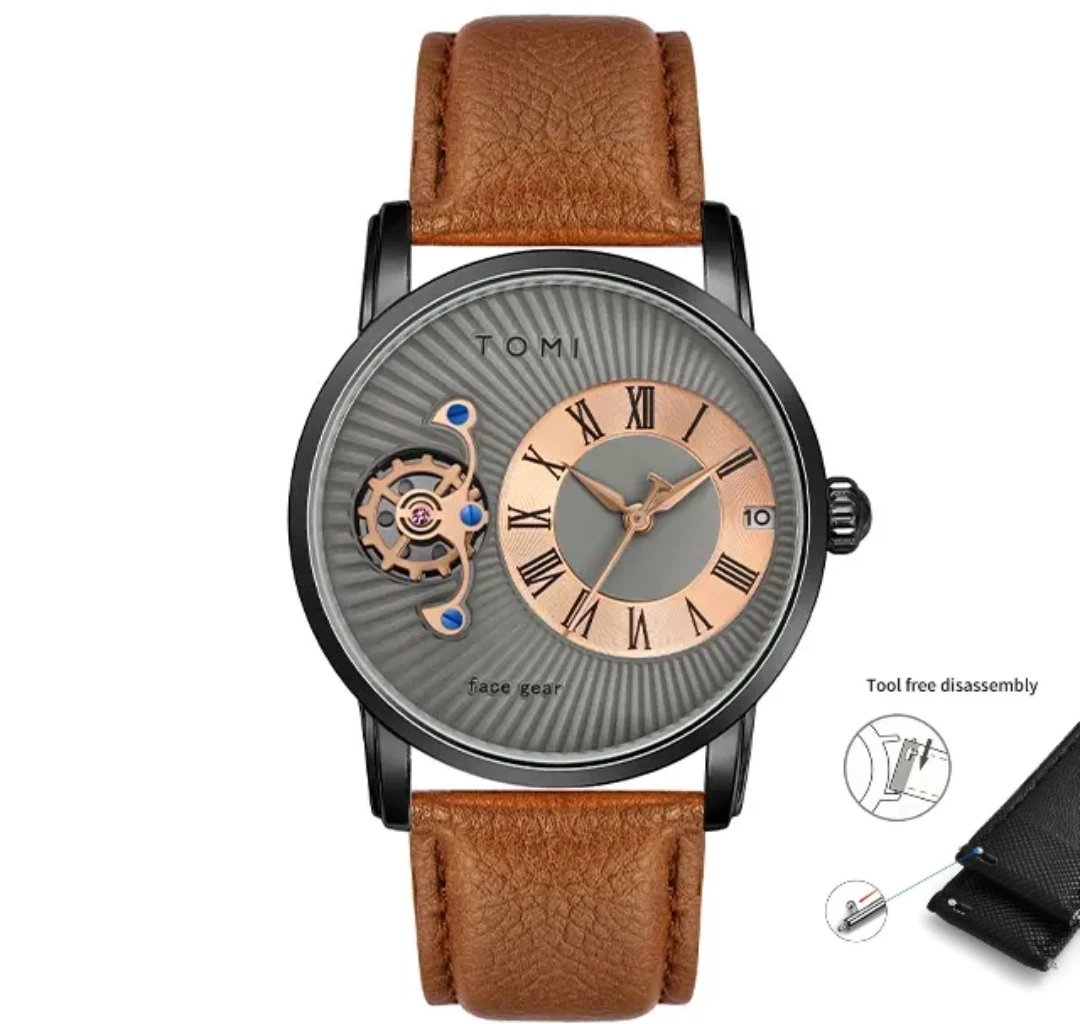 Alliant élégance et robustesse, la montre Tomi T-105 se distingue par son design raffiné et son double bracelet en cuir véritable. Son boîtier en acier inoxydable, son confort au poignet et sa résistance à l’eau en font un accessoire polyvalent, parfait pour toutes les occasions.