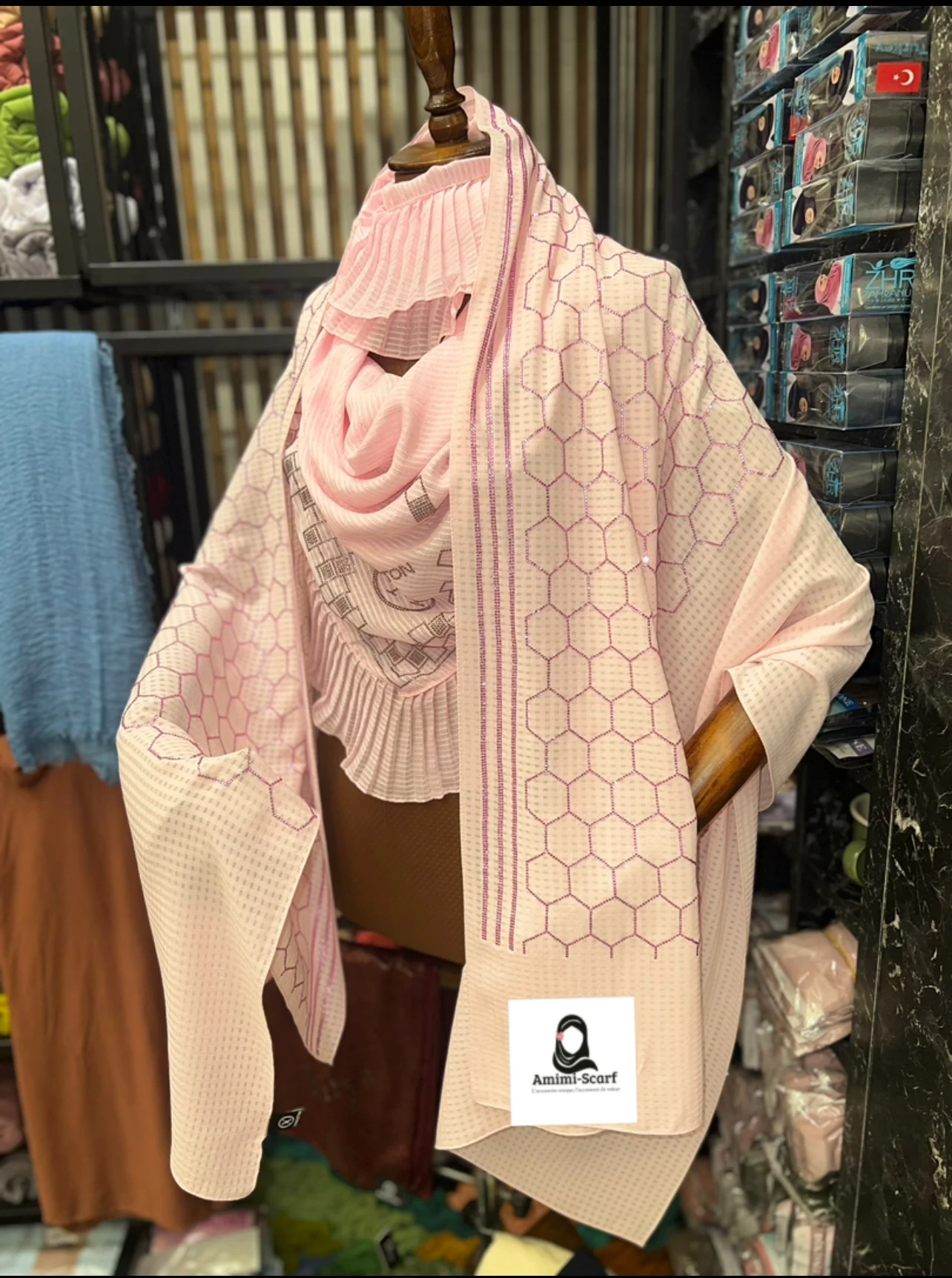 Le voile Kashka turc allie raffinement et praticité pour s’adapter à toutes les occasions. Confectionné dans un tissu léger et fluide, il offre un tombé naturel et un confort optimal tout au long de la journée. Facile à draper, il convient aussi bien aux tenues modestes qu’aux looks plus sophistiqués.