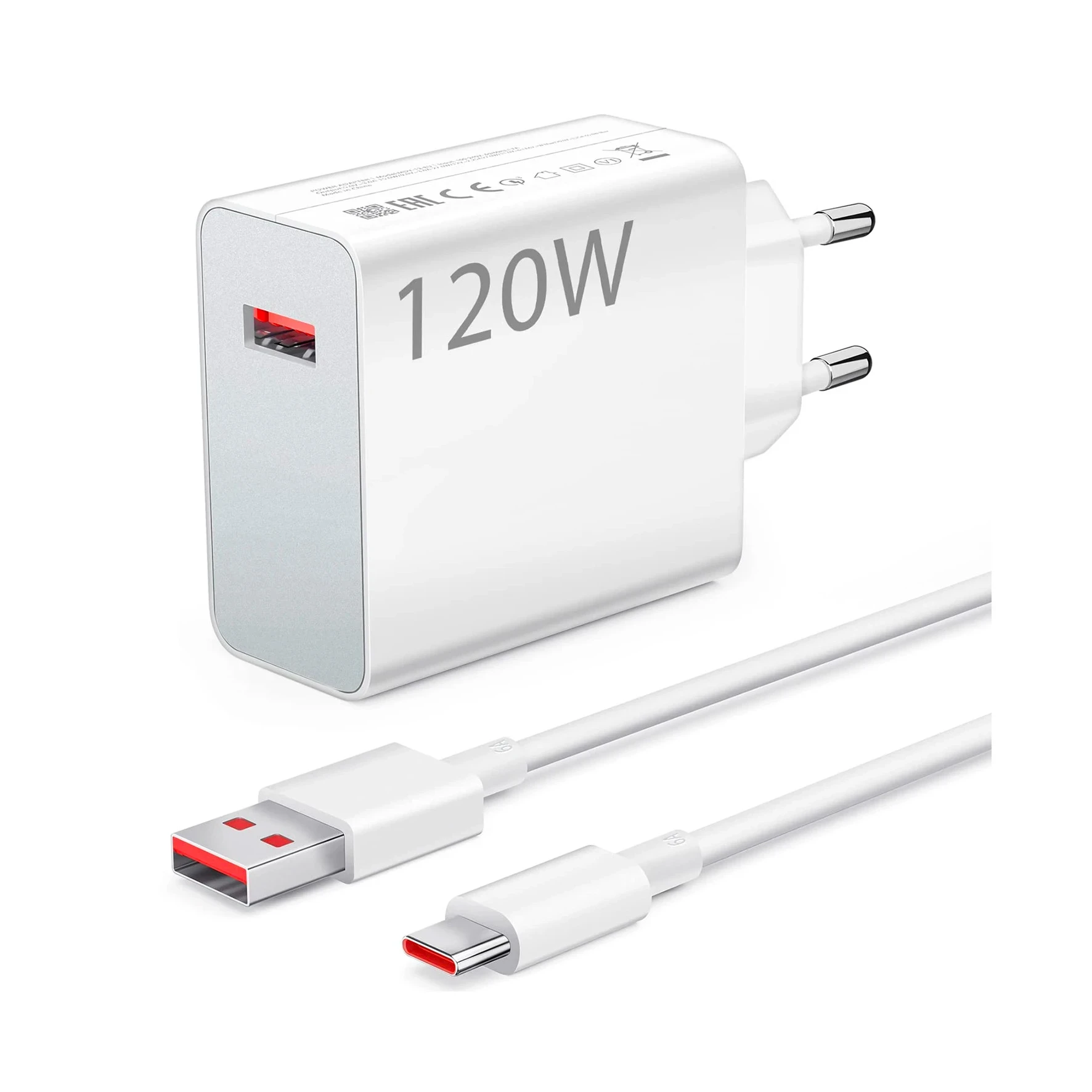 Chargeur 120W avec câble compatible avec les modèles Xiaomi, Redmi et tous autre smartphone type C.